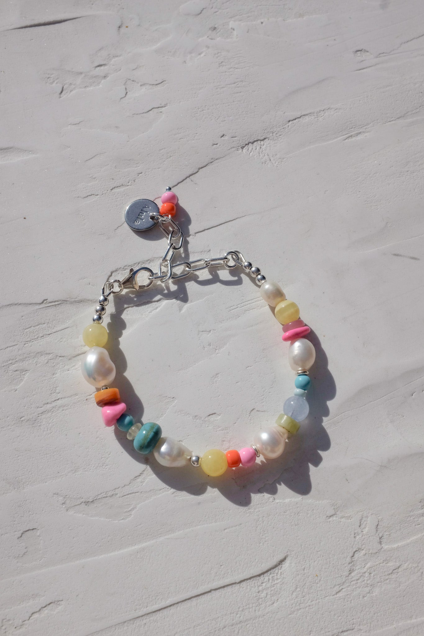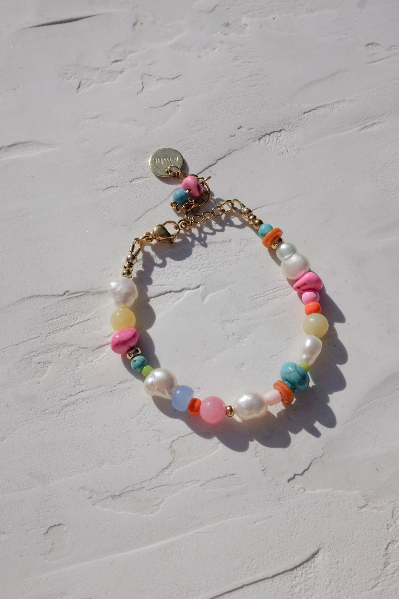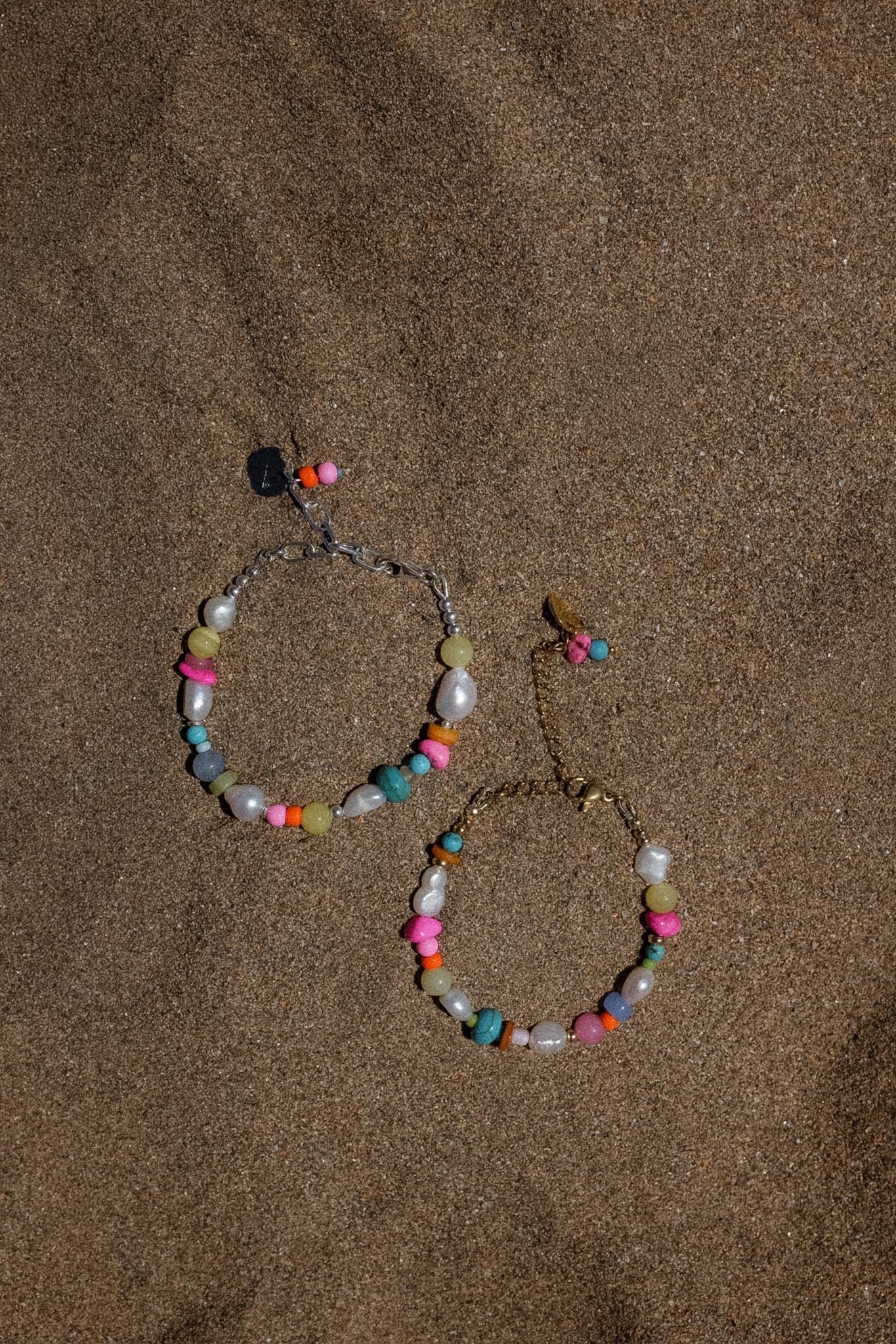 Your colourful beaded pieces are best left on dry land- salt water, moisturisers and chemicals will fade their brightness, so keep them away from the waves to preserve their glow✨