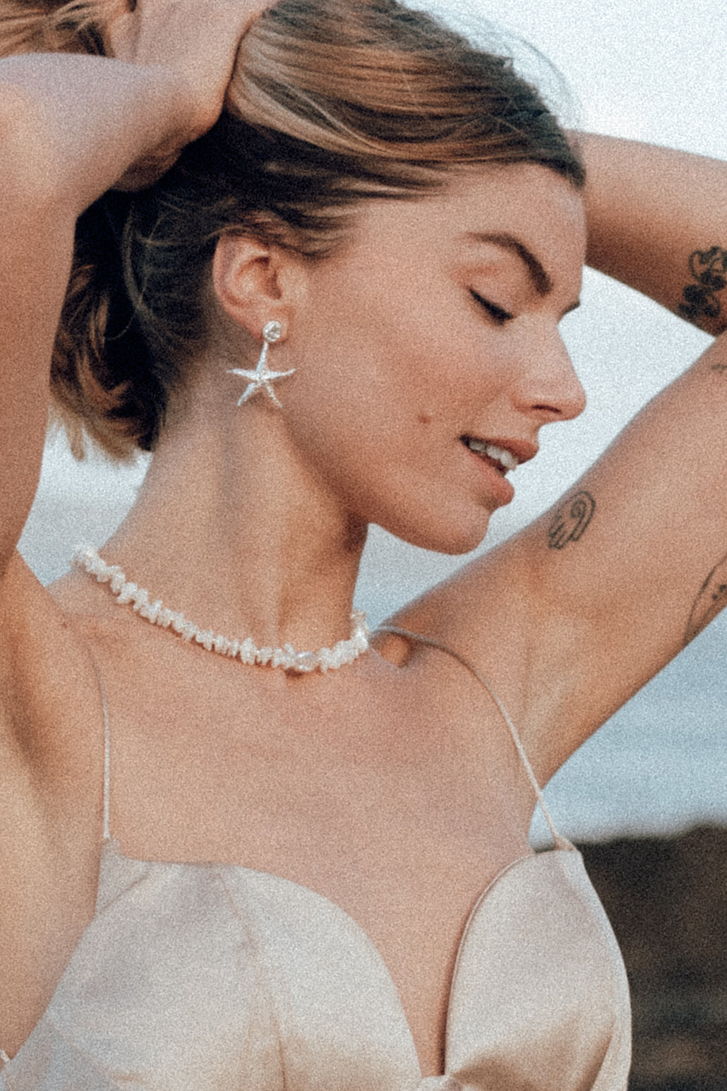 Store all your treasures in a dry, airtight pouch when you’re not wearing them, even sea goddesses need their rest. Gold-filled hardware? She’s the easy-going one- no tarnish, no stress.golden for good.